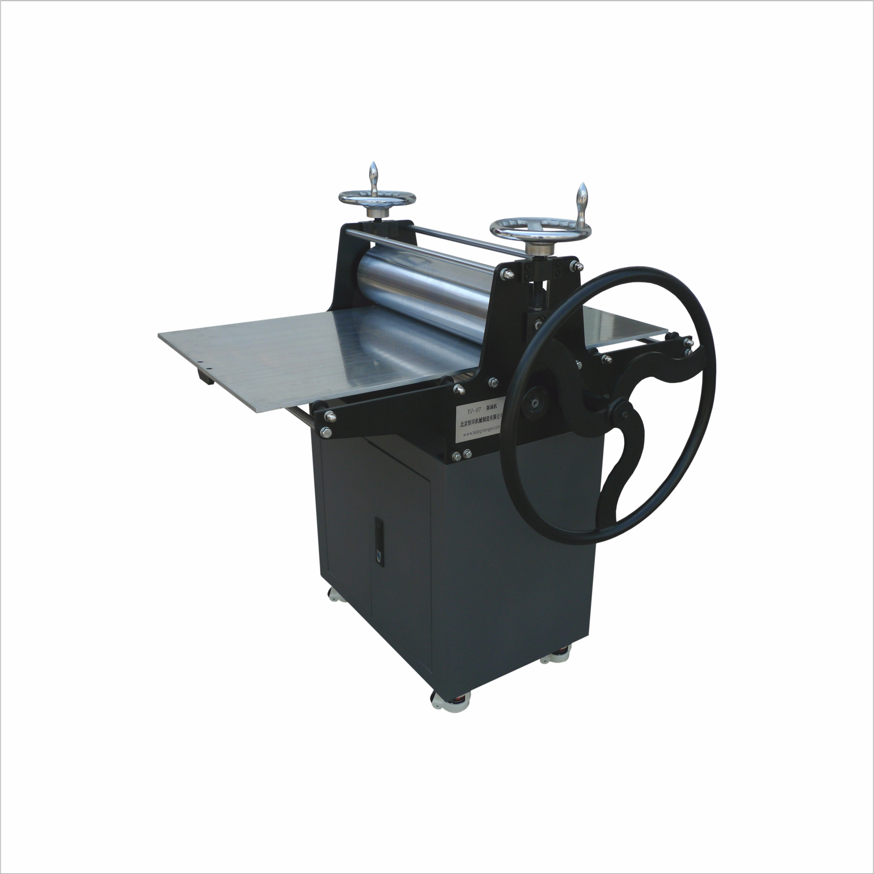 YJ-09B仿古版畫機 參考國內外早期手動平壓型版畫機造型設計制造,橫梁等為球墨鑄鐵鑄造。