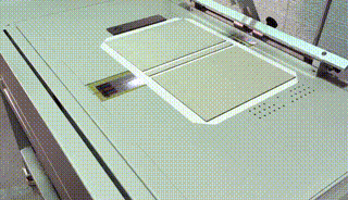 光反射檢測,待紙板進入,自行啟動下行進行逆轉式電動包邊,完成包邊后自動上行復位。